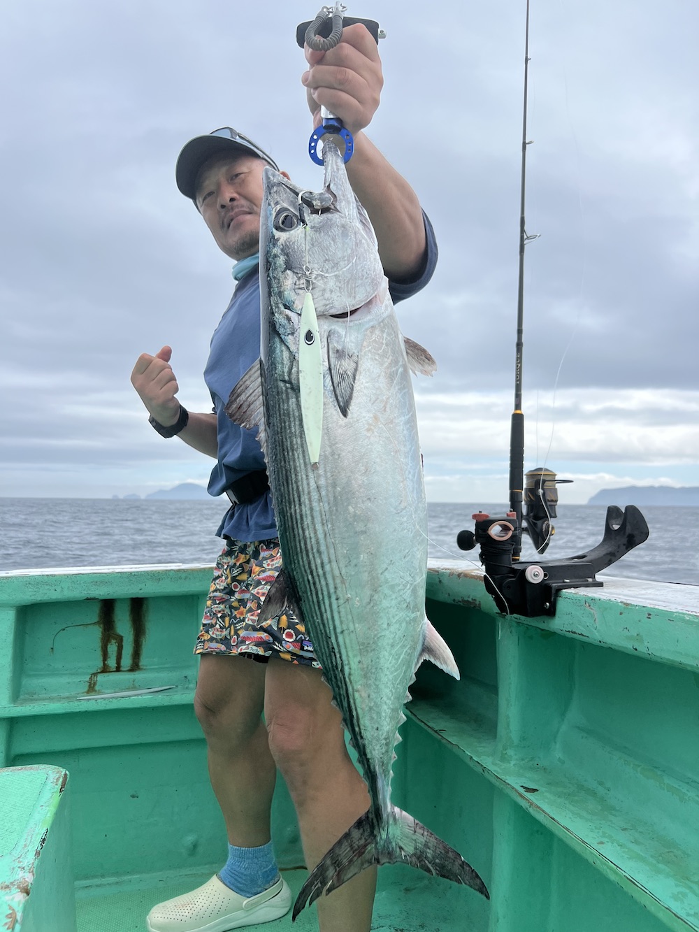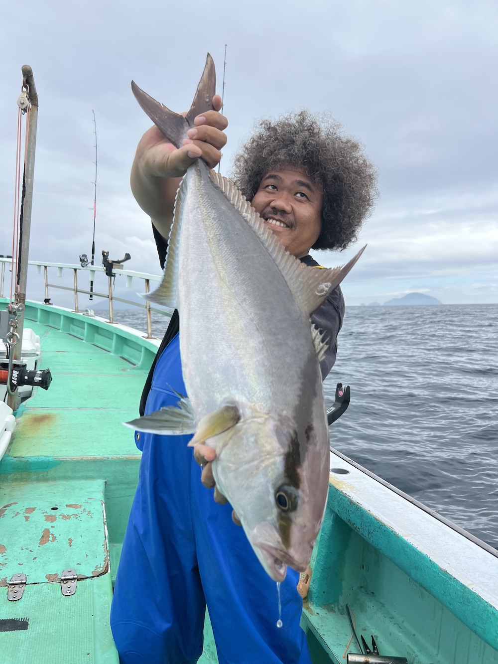 カンパチ、ジグはGummyのグローヘッド。スタートから釣果が出て幸先の良い状況。すぐに私にもヒット。ファイトしていてカンパチだとすぐにわかる。