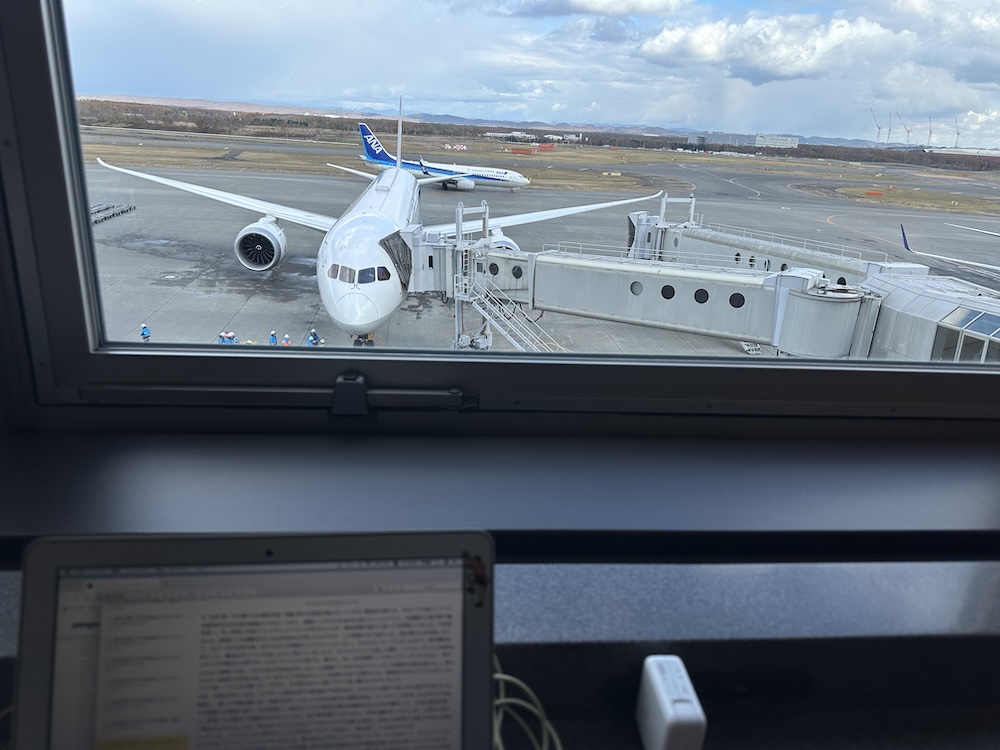 ANAラウンジで昨日の展示会資料をまとめる作業をして、さあ女満別空港へ。飛行機の機材も、渡航時間も福岡から対馬とほぼ同じ。なんか対馬にいく感覚に一瞬囚われたのでした。