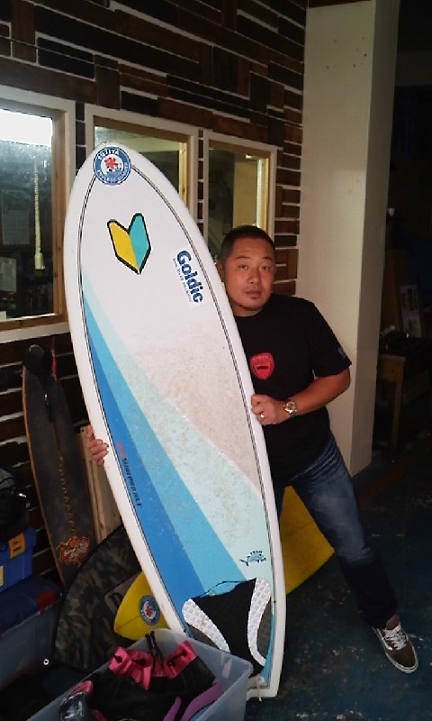 沖縄本島の漁港近くからエントリー出来るポイントだった。この日は台風の影響で釣りは中止、よって船長も一緒にサーフィン。