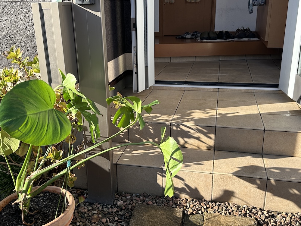 キレイになったら、玄関のモンステラの鉢、鉢皿、モンステラの葉も拭いてあげて完了。