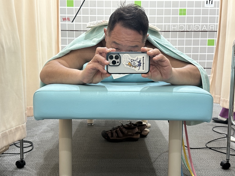 これが終わると背術。ハイボルト治療がやっぱり一番効く。肩甲骨周辺から背骨周り全てをガッツリケアして頂き、ベッドから降りると巻き肩はシャンとし、背中から腰は鉛の重さが無くなり、首の可動域がもの凄く広がる。