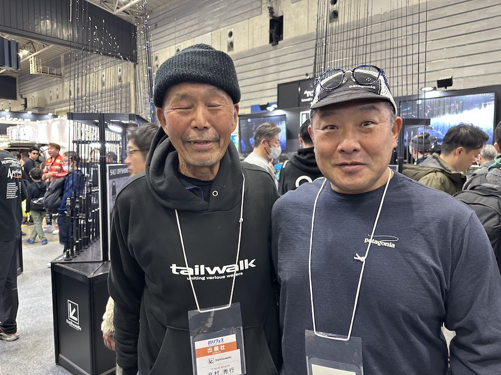 卜部アニキは前夜フィッシングショー後の飲み会でガッツリ飲んだらしく、まだアルコールの匂いがしていた。2日目のフィッシングショーの朝イチ。私も毎回二日酔いでブースに立っていたので、辛い事はよくわかります…。