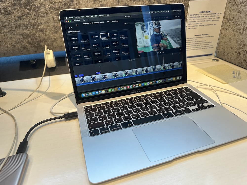 動画編集作業があと3割残っている…。対馬便搭乗まで1時間強あるから、少しでも編集したい。アニキとラウンジに入り、私はガッツリ編集作業なのだ。