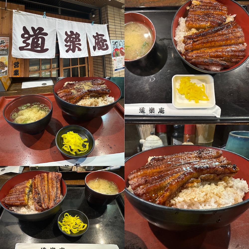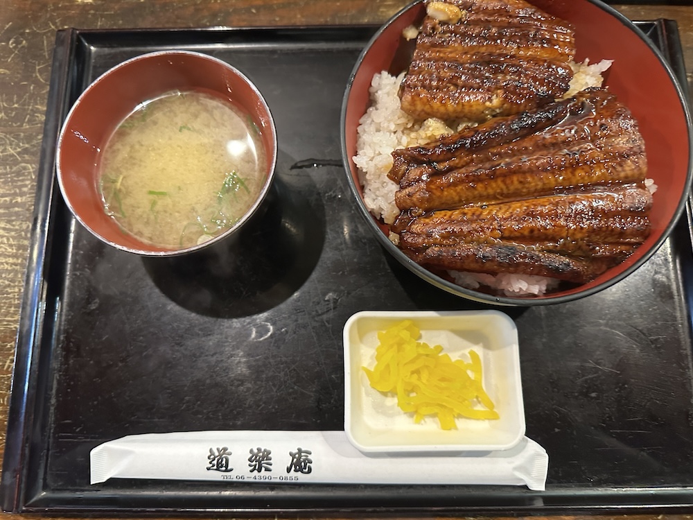初日。11:30に【道楽庵】へ入る。店のおばちゃんが「どーぞ」と席を引いてくれる。「うなぎ丼、タレ多めで」とお願いした。