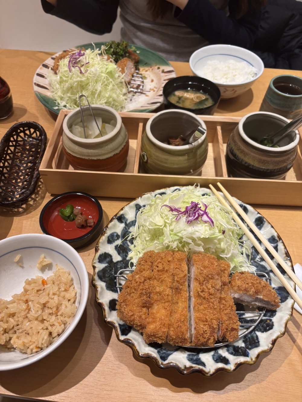 最初は私達夫婦は「ヒレカツ」150gを選んだ。ご飯は炊き込みご飯、味噌汁はナメコの味噌汁。女房は十穀米でお願いしました。楽しみです。