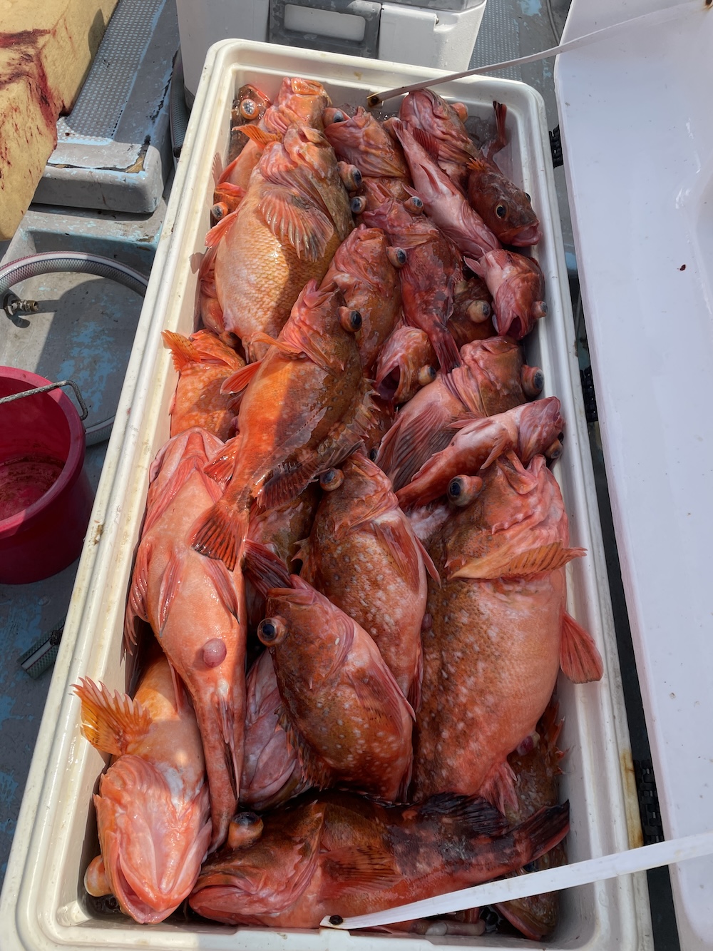 これが地獄の作業で、手巻きの1本針の効率の悪さ。電動仕掛けは2本針で漁をしているが、私らは1本針なのでマヂで辛かった。