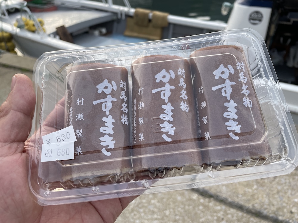 沖仕事最終日。身体は限界に来ており、甘いものが恋しくて「かすまき」が朝食となった。対馬名産のお菓子で、餡子をカステラで巻いた…と思ってもらえたらわかりやすいかなっ。