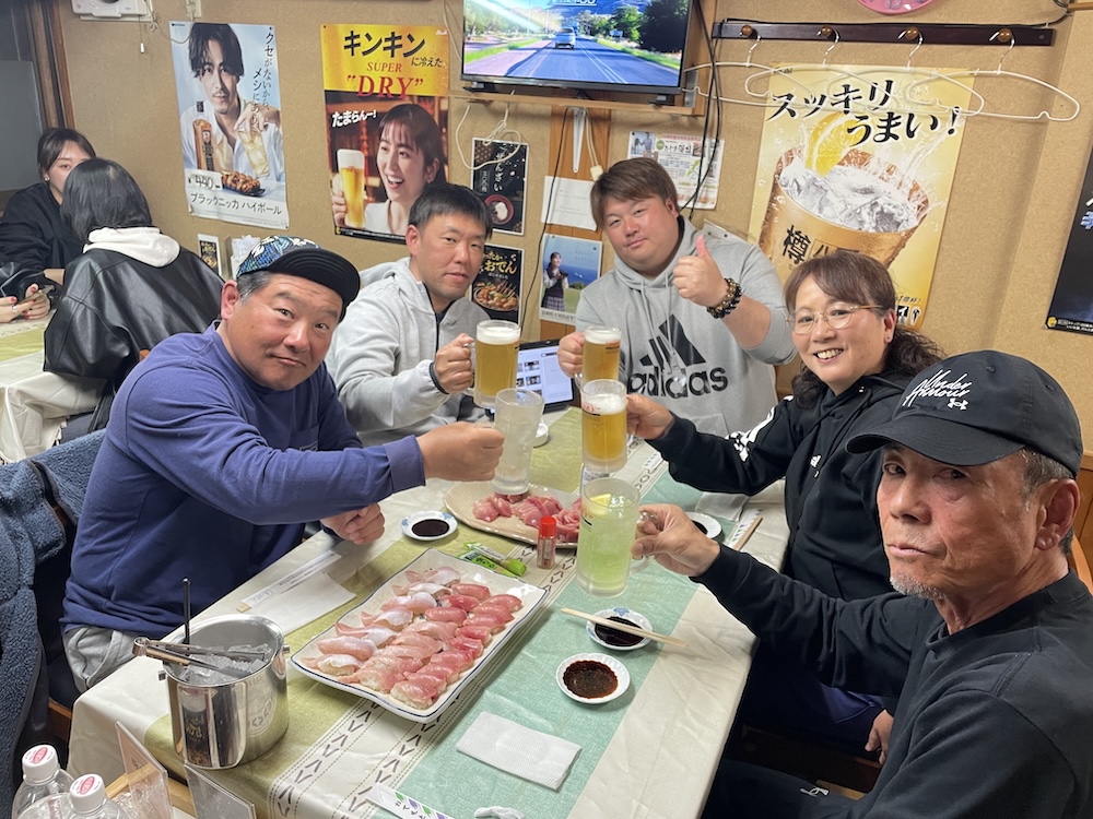 今回は若船長も参加してもらい、ツアー初めてのお客さんもいましたので、会話も楽しんでもらいました。船長とのコミュニケーションは大切なこと。美味しい食事を食べながら、釣りの話で盛り上がる…。このスキンシップを私は大切にしています。